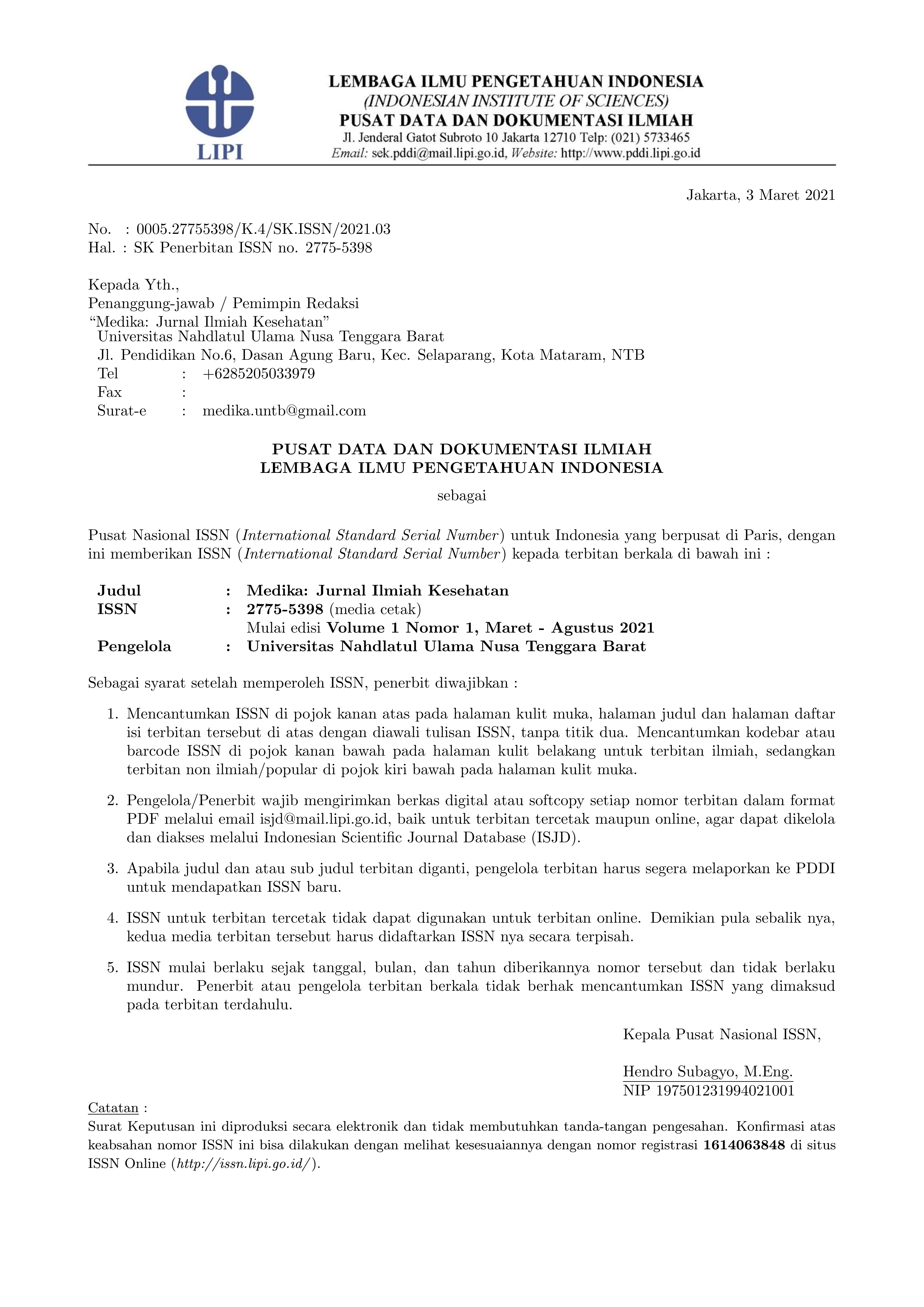 Mobile: Dr. Muhammad Syamsussabri, M.Pd (+6285205033979), Email: medika.ununtb@gmail.com